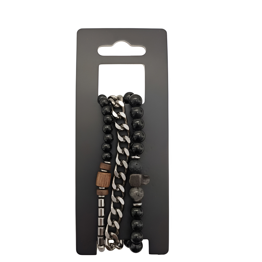 این دستبند مردانه در اصل سه دستبند مجزا هستند که همه رو با هم با این قیمت تقدیم می کنیم. اینکار بدون نیکل است پس ضد حساسیت و کیفیت بالای محصول یه اثر دلچسب از اون ساخته.